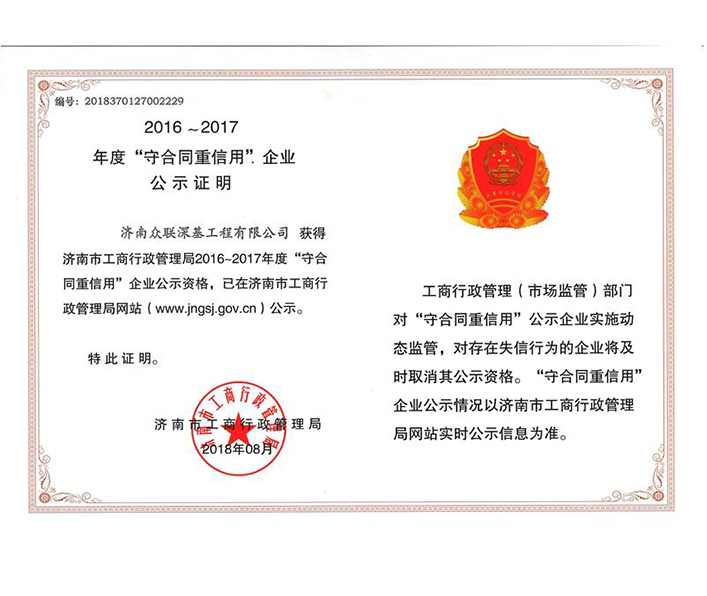山東眾聯恒信工程集團有限公司成立于2010年4月20日,注冊資金2000萬元,固定資產8500萬元,公司主要從事地基基礎、勘察、設計等方面的專業承包,地基基礎專業施工資質壹級。